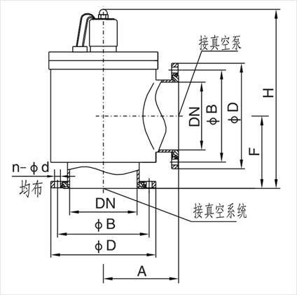 DYC-JQ型系列電磁真空壓差式充氣閥,是安裝在機械真空泵上的專用閥門。安裝于機械真空泵的進氣口,并于泵同步開啟和關(guān)閉。當泵停止工作或電源突然中斷時,閥門能依靠大氣與真空的壓差力使閥板自動關(guān)閉,將真空系統(tǒng)封閉,保持其真空度,并將大氣通過閥的節(jié)流孔充入泵腔內(nèi),從而避免泵油逆流污染真空系統(tǒng)。