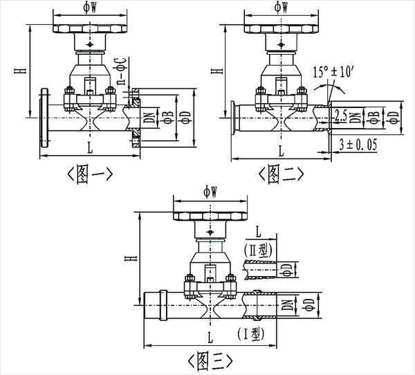 GM型系列高真空隔膜閥(圖三)焊接式連接及外形尺寸 | |