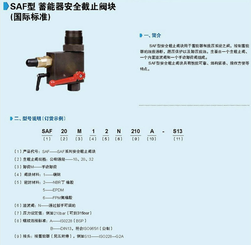 SAF型蓄能器安全截止閥塊技術(shù)參數(shù)