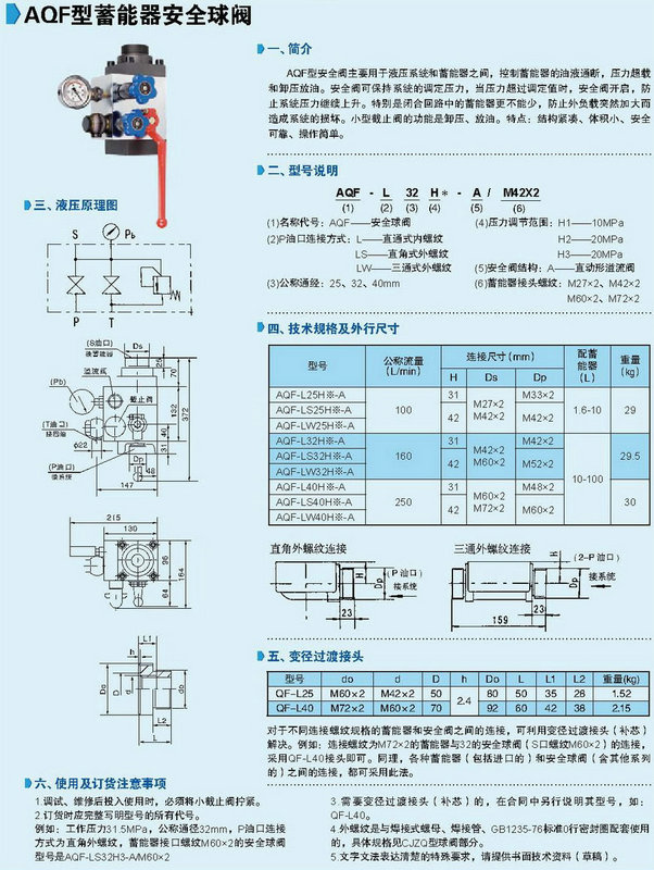 AQF型蓄能器安全球閥技術(shù)參數(shù)
