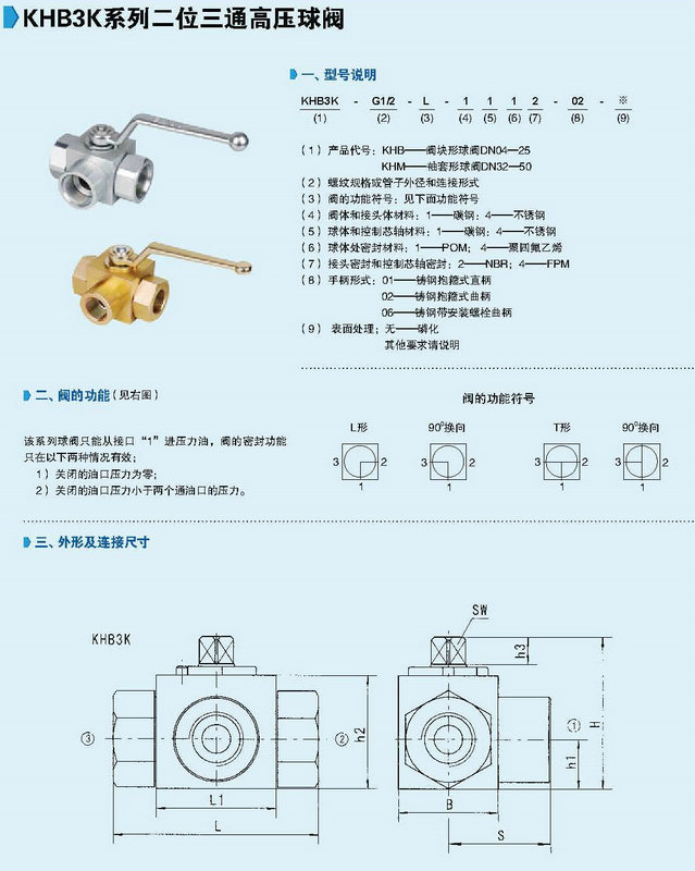 KHB3K系列二位三通高壓球閥技術參數(shù)
