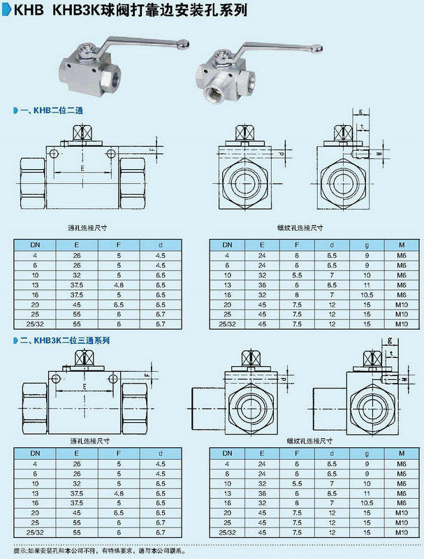 KHB KHB3K球閥打靠邊安裝孔系列