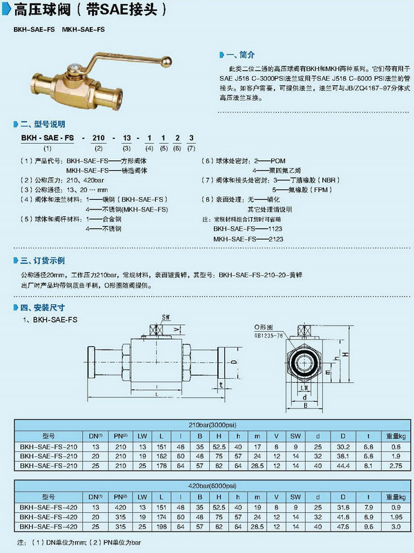 高壓球閥(帶SAE接頭)技術(shù)參數(shù)