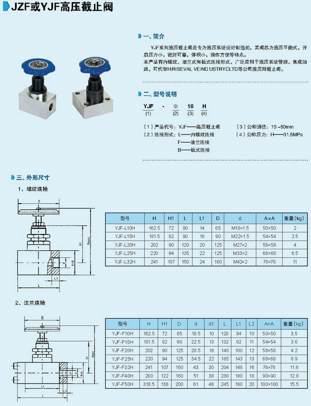 JZF YJF系列高壓截止閥技術(shù)參數(shù)