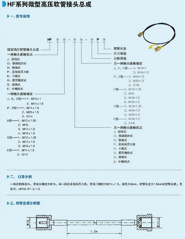 HF系列微型高壓軟管接頭總成技術(shù)參數(shù)