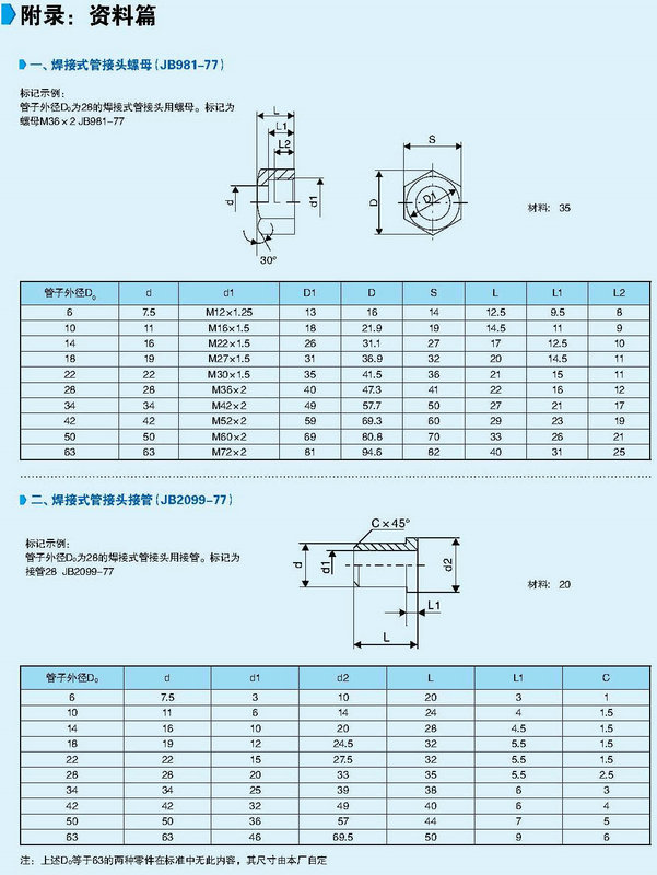 接頭資料技術(shù)參數(shù)